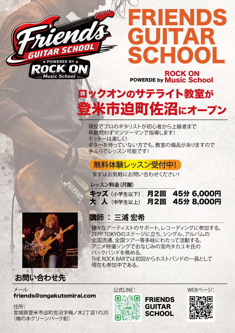 ROCK ON Music School サテライト校 登米市佐沼にオープン!
